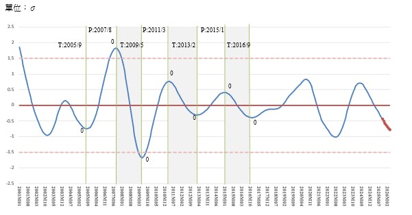 Furthermore, the year-on-year growth rate (yoy) of the actual stock price index showed growth from May to December last year (2024). However, the increase peaked at 15.1% in October, after which the rate of increase was moderated. Since the beginning of this year, it has shown negative growth, deteriorating steadily, with the year-on-year growth rate in October this year even falling to -20.3%. This clearly demonstrates the downward movement of the business cycle.