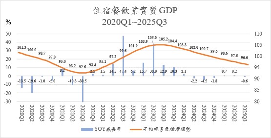 Figure 11. The annual growth rate and circular trend of real GDP in the Accommodation and Catering Industry, 2020Q1~2025Q3