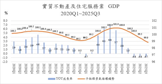 Figure 12. Annual GDP growth rate and cyclical tendency of Real Estate and Residential Service Industry, 2020Q1~2025Q3