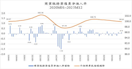 Figure 14. The growth rate and cyclical tendency of The Number of Employees in the Service Industry, January 2020 to December 2025
