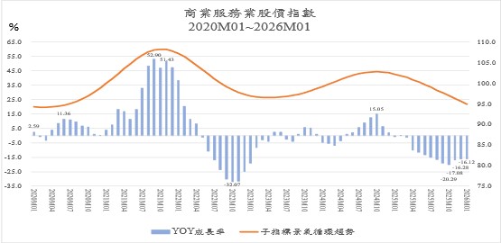 Figure 8. The annual growth rate and circular trend of the Stock Price Index of the commercial service industry, January 2020 to January 2026