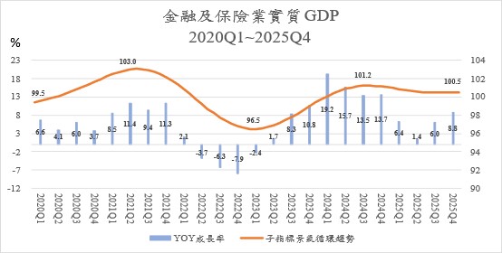 Figure 9. Annual growth rate and cyclical trend of real GDP of Finance and Insurance Sector, 2020Q1~2025Q4