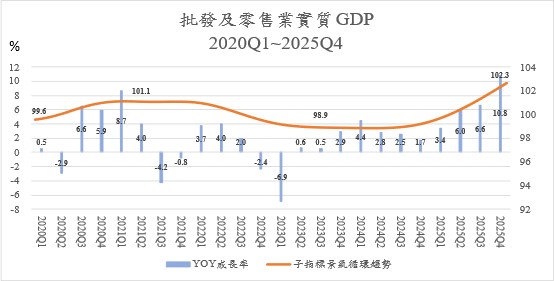 Figure 10. Annual growth rate and cyclical trend of real GDP Index of Wholesale and Retail, 2020Q1~2025Q4