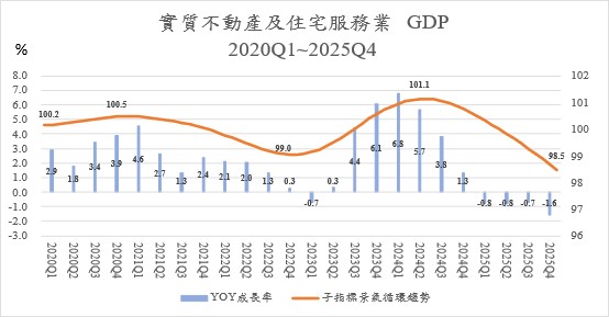 Figure 12. Annual GDP growth rate and cyclical tendency of Real Estate and Residential Service Industry, 2020Q1~2025Q4