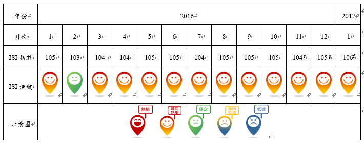 預測107年元月指標分數再略升為106,仍維持黃紅燈